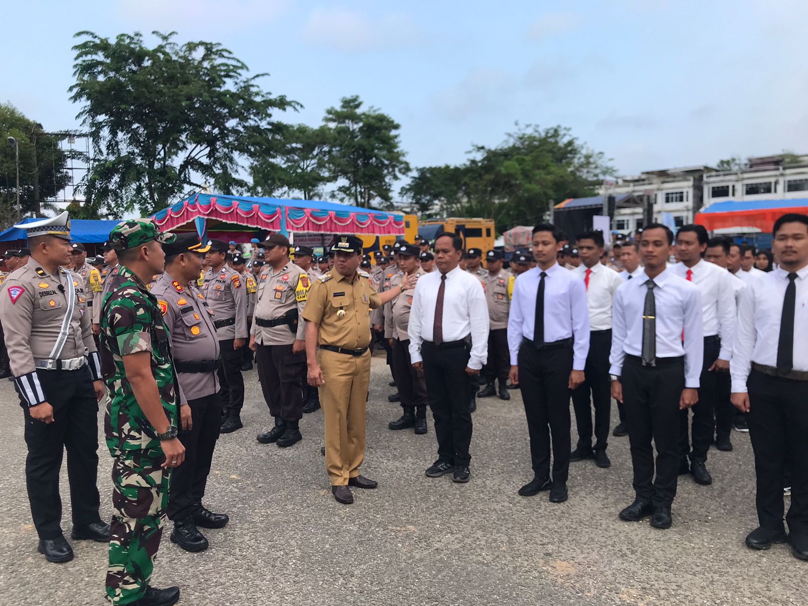 Apel Gelar Pasukan Pengamanan Event Festival Pacu Jalur 2023 tersebut dipimpin oleh Bupati Kuantan Singingi Drs.H Suhardiman Amby, Ak. MM, dan dihadiri oleh Kapolres Kuansing AKBP Pangucap Priyo Soegito. S.I.K., M.H, Dandim 0302 Inhu-Kuansing Letkol Kav. Dani Prasetyio Wibowo, S.Sos, M.I.P dan Pejabat Forkopimda Kab Kuansing lainnya, Sekda Kab Kuansing H. Dedi Sambudy. SKM. M. Kes , Para Kadis dilingkungan Pemkab Kuansing, Para PJU dan Kapolsek Jajaran Polres Kuansing, Pers Polres dan Polsek Jajaran Polres Kuansing, Personil TNI Kodim 0302 Inhu-Kuansing, Personil Sat Pol PP dan Damkar Kab. Kuansing, Personil BPBD Kab. Kuansing, Personil Dinas Perhubungan Kab. Kuansing dan Anggota Ormas dari Pemuda Pancasila ( PP) dan Anggota Laskar Pemuda Kenegerian Taluk ( LPKT).