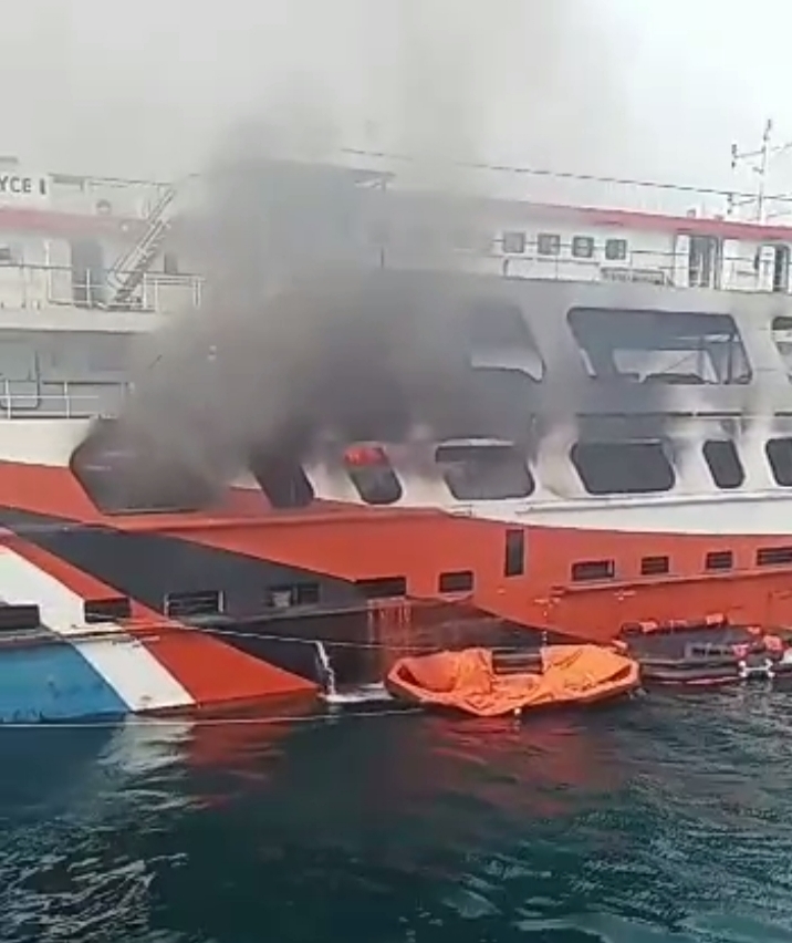 [[ Suaramassa.co.id.]] – Kapal feri KMP terbakar di Laut Merak Banten, api berasal dari truk yang terbakar di dek kendaraan, proses pemadaman di kapal masih dilakukan tim gabungan, penumpang bergantian dievakuasi menuju Pelabuhan Merak oleh tim SAR.