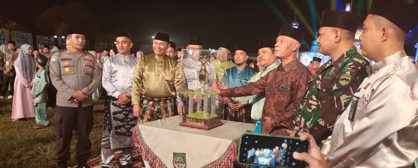 Terakhir, Wakil Bupati Rokan Hulu didampingi Sekretaris Daerah Rokan Hulu serta Unsur Forkopimda menyerahkan Trofi Juara Umum kepada Kecamatan Rokan IV Koto yang diterima langsung oleh Camat Rokan IV Koto, Farid Toha, dilanjutkan pula dengan penyerahan Trofi bagi para Qori dan Qoriah yang telah terpilih sebagai yang terbaik dalam MTQ ke 23 Tingkat Kabupaten Rokan Hulu.(Galery)