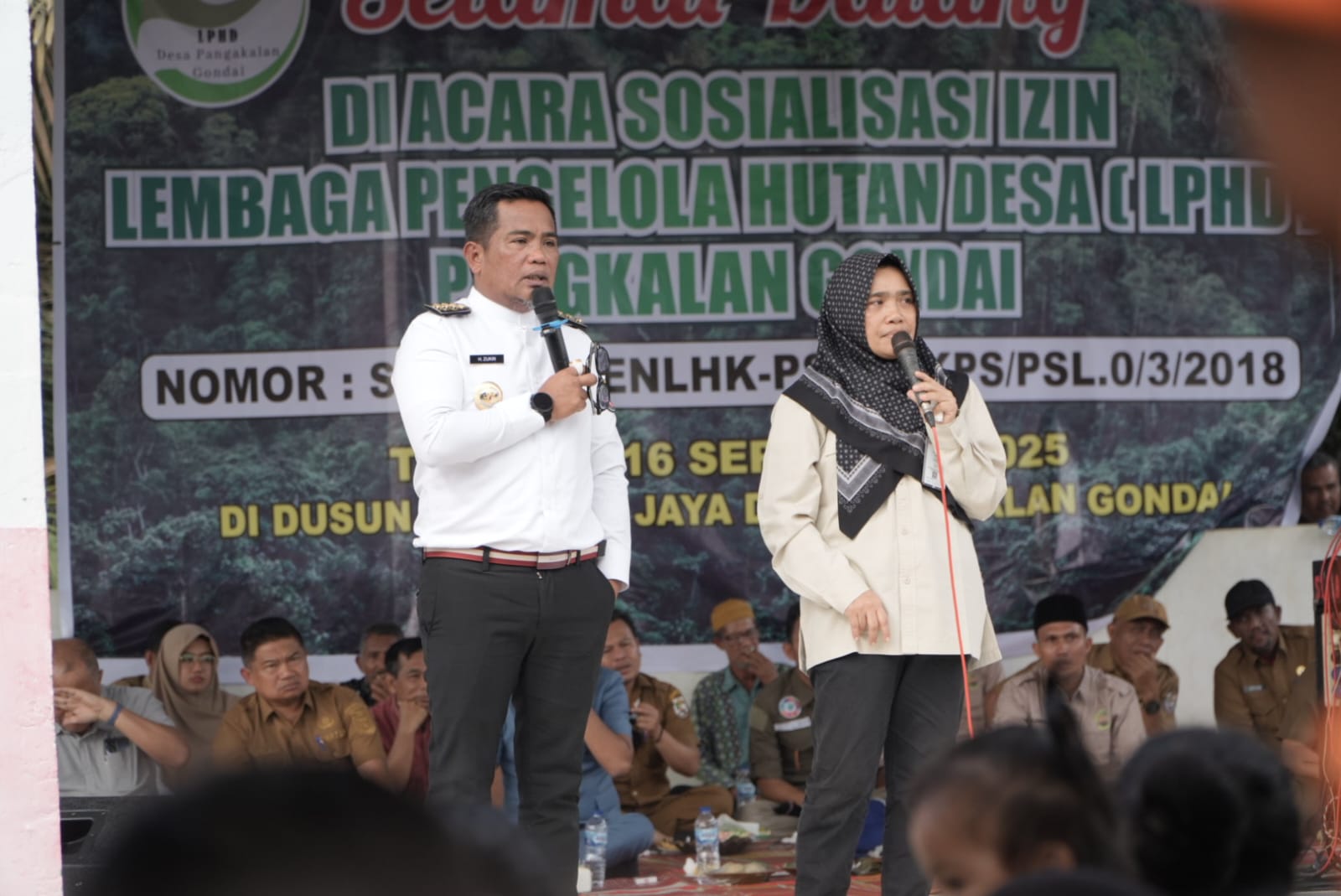 Pelalawan – Bupati Pelalawan H. Zukri, S.M., M.M. menghadiri kegiatan sosialisasi Keberadaan Izin Lembaga Pengelola Hutan Desa (LPHD) Pangkalan Gondai yang digelar di Dusun Mamahan Jaya, Desa Pangkalan Gondai, Selasa (16/9/2025).