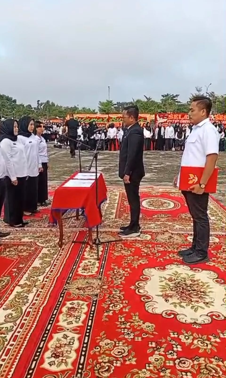 Pelalawan – Bupati Pelalawan H. Zukri, SM, MM secara resmi melantik dan mengambil sumpah/janji sebanyak 3.816 Pegawai Pemerintah dengan Perjanjian Kerja (PPPK) Paruh Waktu di lingkungan Pemerintah Kabupaten Pelalawan. Pelantikan tersebut dilaksanakan di halaman Kantor Bupati Pelalawan, Rabu (31/12/2025).