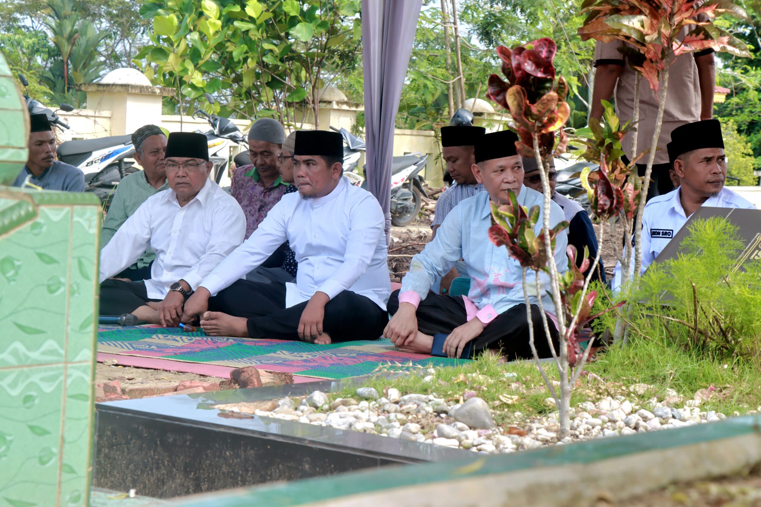 Bupati H. Zukri bersama masyarakat mengawali ziarah dengan membaca tahlil dan Yasin. Kemudian Bupati Zukri juga menabur bunga di makam.