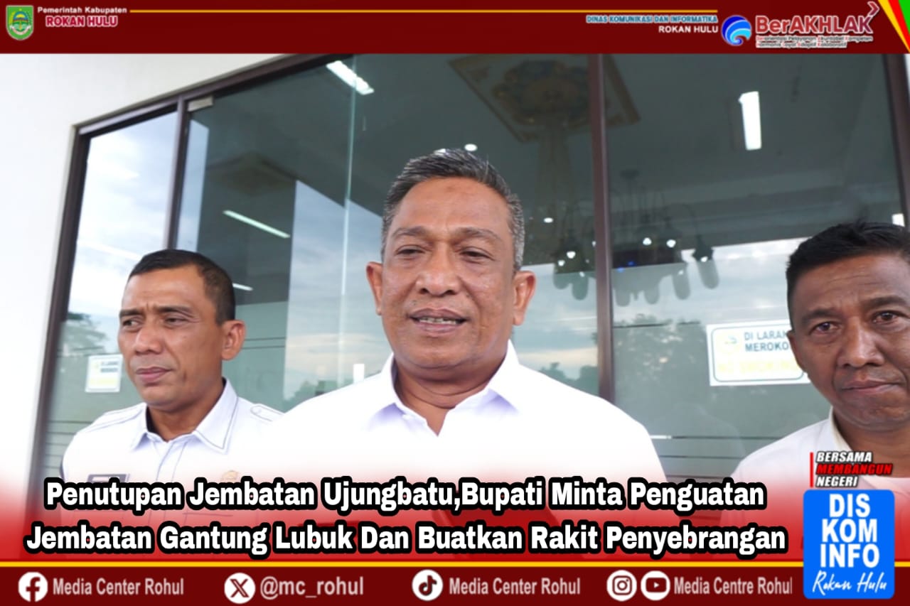 ROKAN HULU – Menyusul dikeluarkannya himbauan dan pemberitahuan terkait penutupan Jembatan Ujung Batu, Bupati Rokan Hulu (Rohul) Anton, ST, MM, membenarkan langkah tersebut. Ia menjelaskan bahwa penutupan dilakukan karena adanya rencana perbaikan infrastruktur jembatan yang sudah disosialisasikan sebelumnya oleh Dinas Perhubungan dan PUPR Provinsi Riau kepada pihak Dinas Perhubungan dan PUPR Rohul di Kecamatan Ujung Batu.