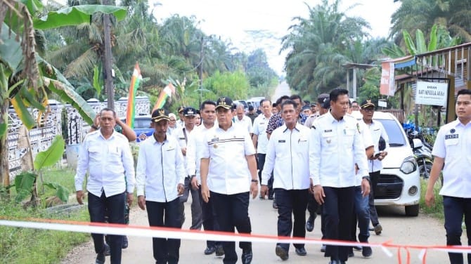 Rokan Hulu – Bupati Rokan Hulu, H. Sukiman, secara resmi meresmikan penggunaan jalan penghubung antara Desa Pasir Utama Kecamatan Rambah Hilir dengan Desa Pasir Agung Kecamatan Bangun Purba. Proyek ini telah direalisasikan melalui anggaran APBD Pemerintah Kabupaten Rokan Hulu tahun 2023 dengan total biaya sebesar 2,4 miliar rupiah. Jalan dengan panjang sekitar 774 meter tersebut telah melalui proses pengaspalan dan pembangunan gorong-gorong, Rabu (31/01/24).