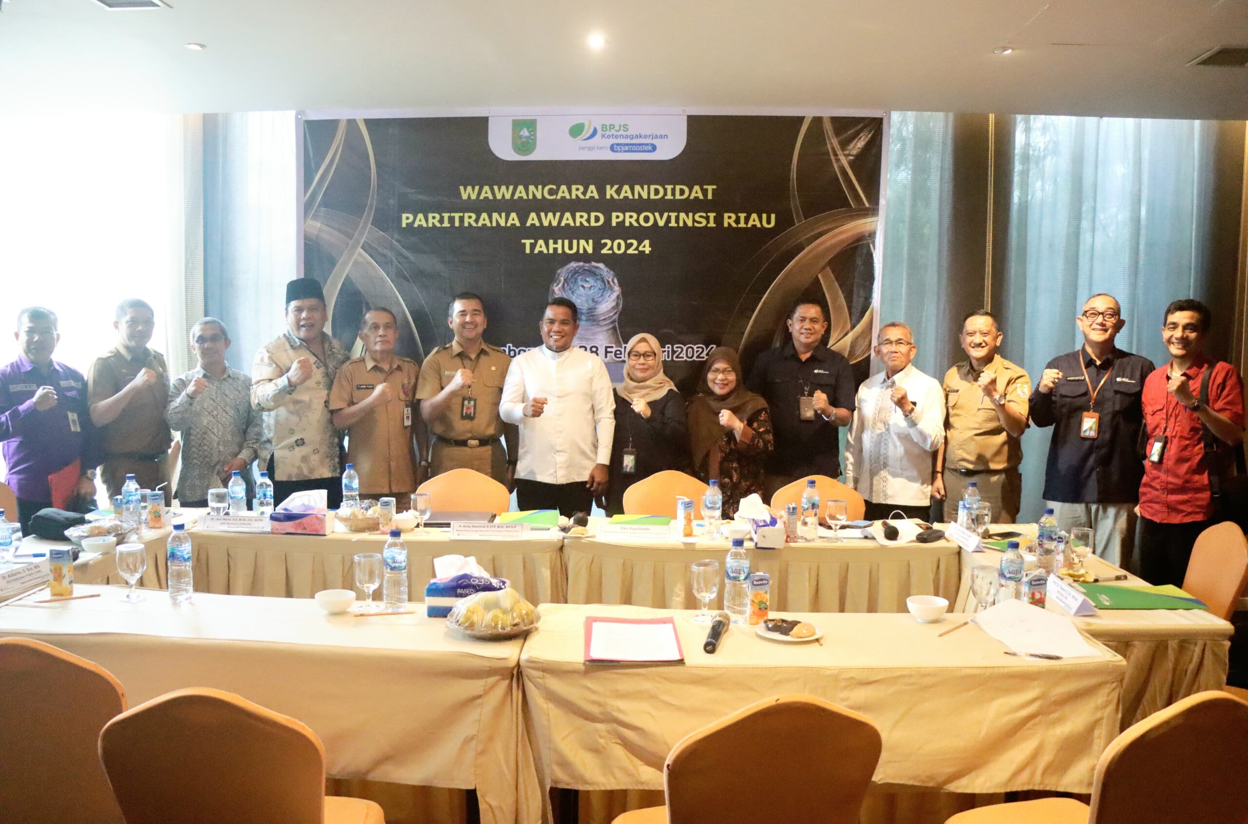 Pekanbaru – Bupati Pelalawan H. Zukri, SE mengikuti Wawancara kandidat Paritrana Award Propinsi Riau Tahun 2024 yang ditaja oleh BPJS ketenagakerjaan, kegiatan diselenggarakan di Hotel Premiere Pekanbaru, Selasa ( 27/2/2024).