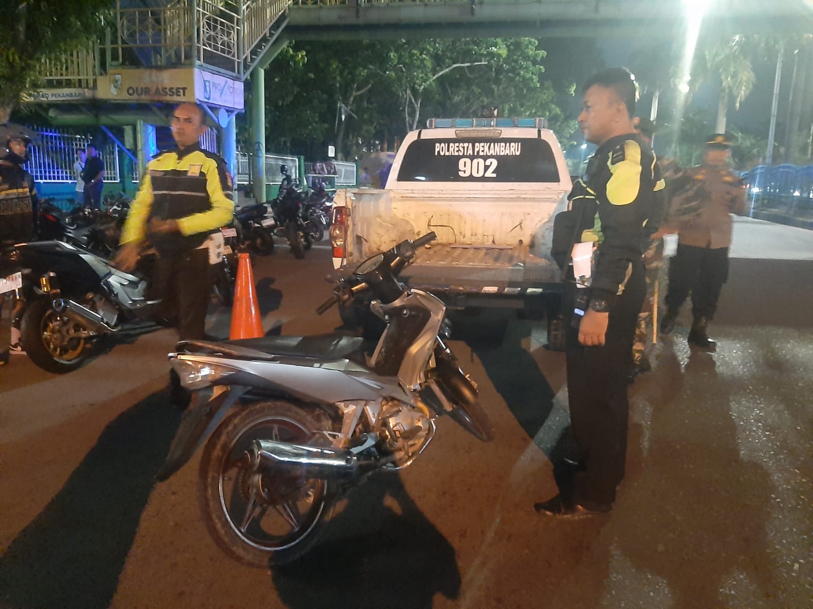 Dalam kegiatan razia yang dipimpin langsung oleh Kapolsek Bukit Raya tersebut berhasil mengamankan 22 Unit Sepeda Motor berkenalpot brong yang tidak sesuai standar kendaraan dan tidak dilengkapi surat-surat serta diduga akan digunakan untuk aksi balap liar.