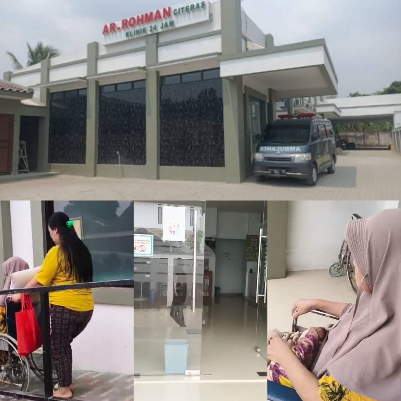 ” Dimana hati nurani mereka (klinik Ar – Rohman) padahal ibu saya sudah sangat lemah kondisinya harus cepat ditangani, namun dengan alasan pasien BPJS dibatasi hanya sampai 5 orang saja mereka menolak sehingga saya kembali membawa ibu saya keluar memakai kursi roda.” Terangnya dengan nada kesal.