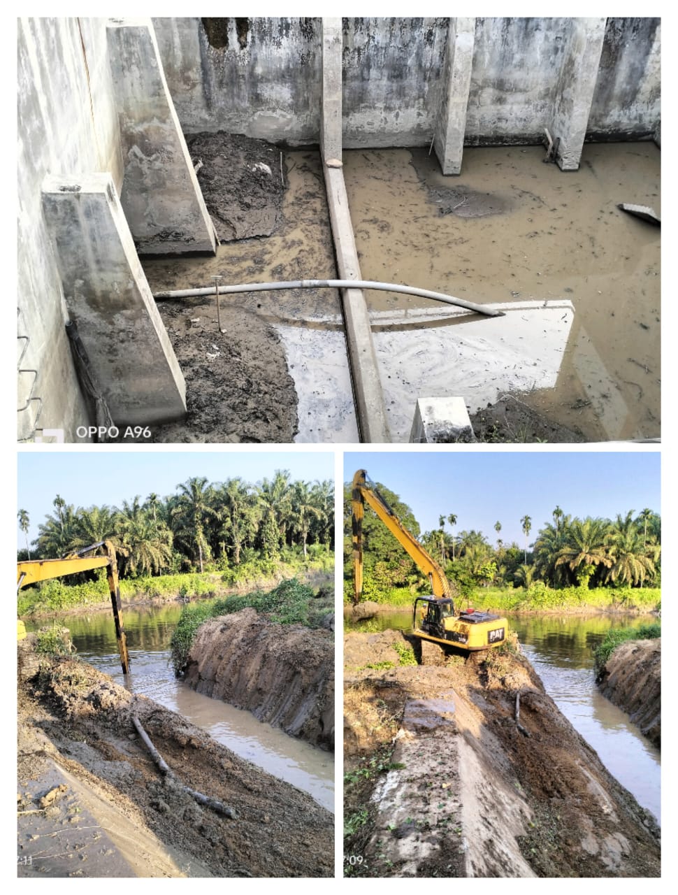Hari ini kita sudah turunkan alat berat untuk menguras tanah ataupun lumpur yg menyumbat saluran dari batang lubuh menuju Intake, kendalanya sekarang Intake induk yg kedalam 8 meter tidak bisa dimasuki alat berat, dan lumpur yang mengendap didalam Intake mencapai satu meter lebih, ini harus dikerjakan pengurasan secara menual.