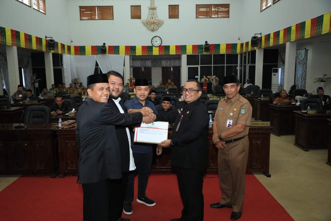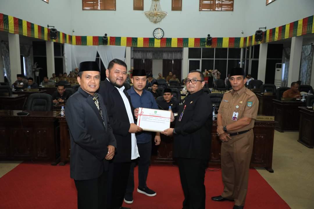 Selanjutnya, Sekda menyerahkan rancangan perubahan kebijakan umum APBD dan perubahan prioritas serta plafon anggaran sementara APBD Kabupaten Rokan Hulu tahun anggaran 2023 kepada Ketua DPRD Rohul, Novliwanda Ade Putra.(Umri)