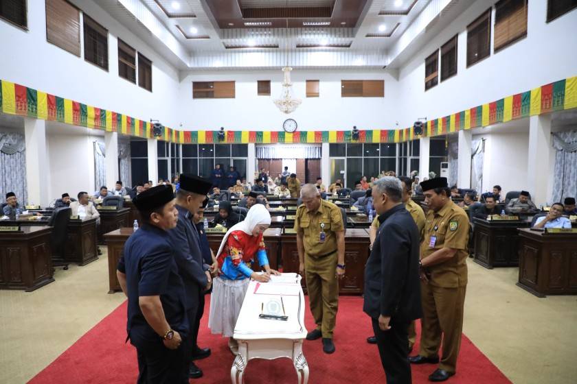 Setelah penandatanganan pengambilan keputusan Ketua DPRD Rohul Sumiartini menyatakan sah, sah APBD Perubahan TA 2025′ sesuai laporan Banggar yang disetujui seluruh anggota DPRD yang hadir dan langsung menutup Rapat Paripurna dengan mengetok palu di jam 00.51 Wib, Selasa (30/9/2025).