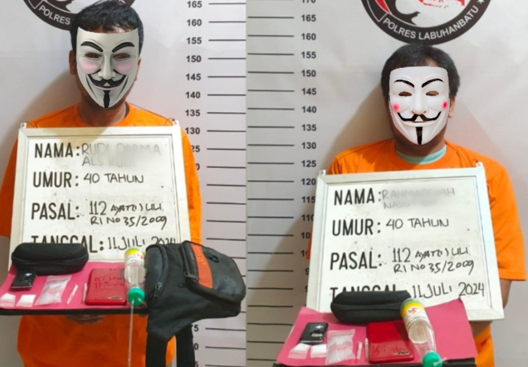 Kapolres Labuhanbatu AKBP Bernhard L Malau SIK, MH melalui Kasi Humas AKP Syafruddin kepada wartawan, Jum,at (12/07/24) sore mengungkapkan identitas kedua pria itu yakni RD (40) yang RN (36). Keduanya berdomisili di lingkungan tempat mereka diamankan.