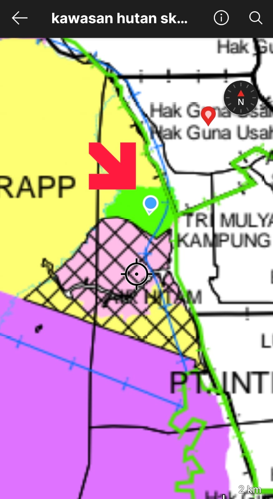 “Setelah kita telusuri dari titik kordinatnya lahan seluas +285 hektar tersebut memang benar berada dalam kawasan hutan HPT (Hutan Produksi Terbatas) dan Kawasan Hutan Produksi Tetap telah menghasilkan buah sawit yang dijual kepada salah satu PKS di daerah Pelalawan,” lanjut Yudi.