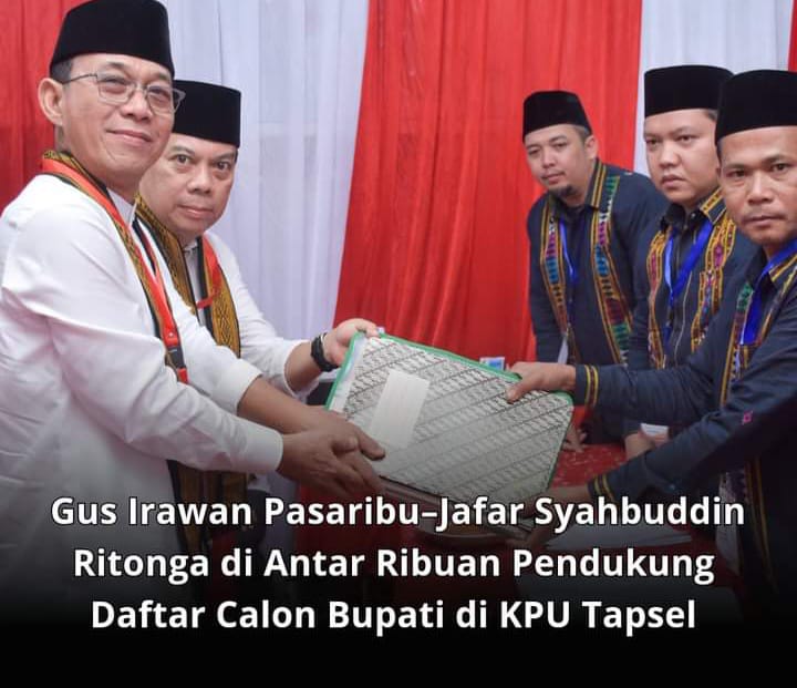 Tapanuli Selatan – Kehadiran pasangan calon yang menggaungkan tagline ‘BAGUSI, Tapsel Kembali Bangkit 2024’ diantar oleh perwakilan dari 12 partai pengusung dan ribuan masyarakat Tapsel, (29/8/2024).