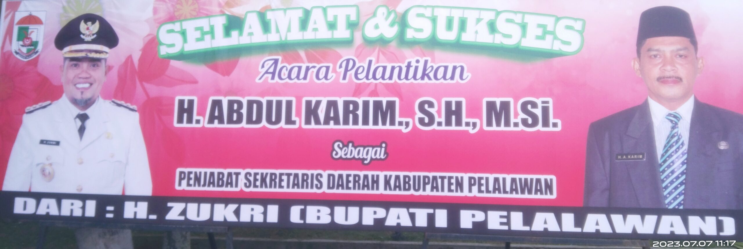 Pelalawan suaramassa.co.id – Bupati Pelalawan H. Zukri pimpin pelantikan dan pengambilan sumpah /janji Penjabat Sekretaris Daerah Kabupaten Pelalawan pada Jumat, 7 Juli 2023 di Gedung Daerah Datuk Laksemana Mangkudiraja, Pangakalan Kerinci. H. Abdul Karim, S.H.,M.Si dilantik oleh Bupati Pelalawan sebagai Penjabat Sekretaris Daerah Kabupaten Pelalawan untuk mengisi kekosongan jabatan Sekretaris Daerah Kabupaten Pelalawan saat ini. Sebelumnya, Sekretaris Daerah Kabupaten Pelalawan H. Tengku Mukhlis telah meninggal dunia pada 25 Juni 2023 yang lalu.