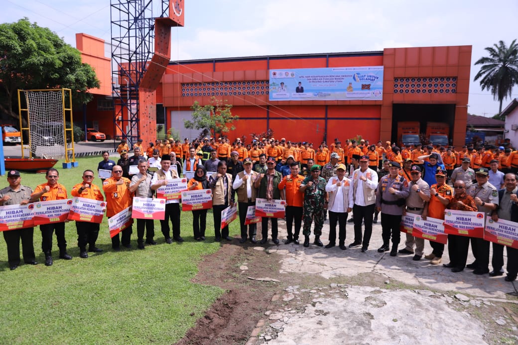 MEDAN – Pemerintah Provinsi (Pemprov) Sumatera Utara menyerahkan bantuan alat kebencanaan senilai Rp1,8 miliar kepada Pemerintah Kabupaten dan Kota. Bantuan peralatan yang diserahkan berupa perahu, tenda mesin pompa, serta peralatan kebakaran hutan dan lahan.