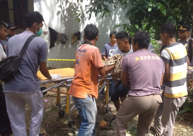 Mayat diduga merupakan korban pembunuhan ini ditemukan salah satu kerabatnya dalam kondisi sudah tidak bernyawa dan mempunyai luka diduga akibat benda tumpul pada bagian kepala. Diketahui wanita tersebut merupakan seorang janda warga Kampung Sawah bernama Setia alias Tia (62).