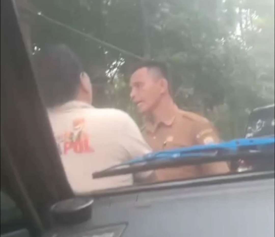 Jadi saya awalnya dari arah Gunung Kencana dibuntuti oleh mobil Plat Merah atau Mobil Dinas oknum Kepala Desa tersebut. Saya waktu itu arah pulang, dan saya di salip kedepan di Jalan Raya Gunung Kencana Cirinten kemudian ditempat yang sepi dia (Oknum Jaro) berhenti dan keluar dari mobilnya kemudian memberhentikan mobil saya menggedor mobil saya dengan nada tinggi dan berkata kata kasar,”kata Aan.