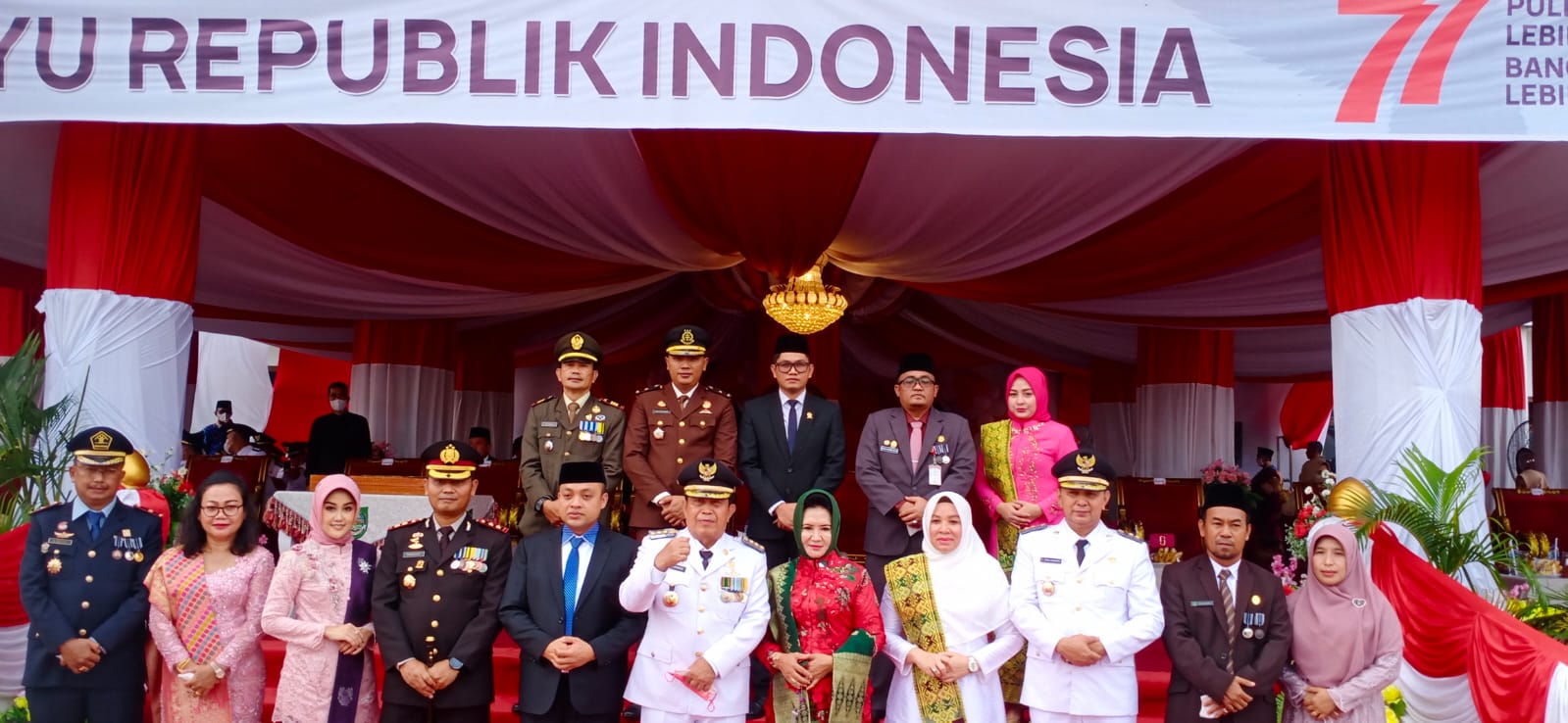 Rohul ||– Detik-Detik Proklamasi dalam rangka Hari Ulang Tahun (HUT) ke – 78 Kemerdekaan Republik Indonesia Tingkat Kabupaten Rokan Hulu (Rohul), yang dipusatkan di Kantor Bupati Rohul, Kamis 17 Agustus 2023, berlangsung khidmat dan lancar.