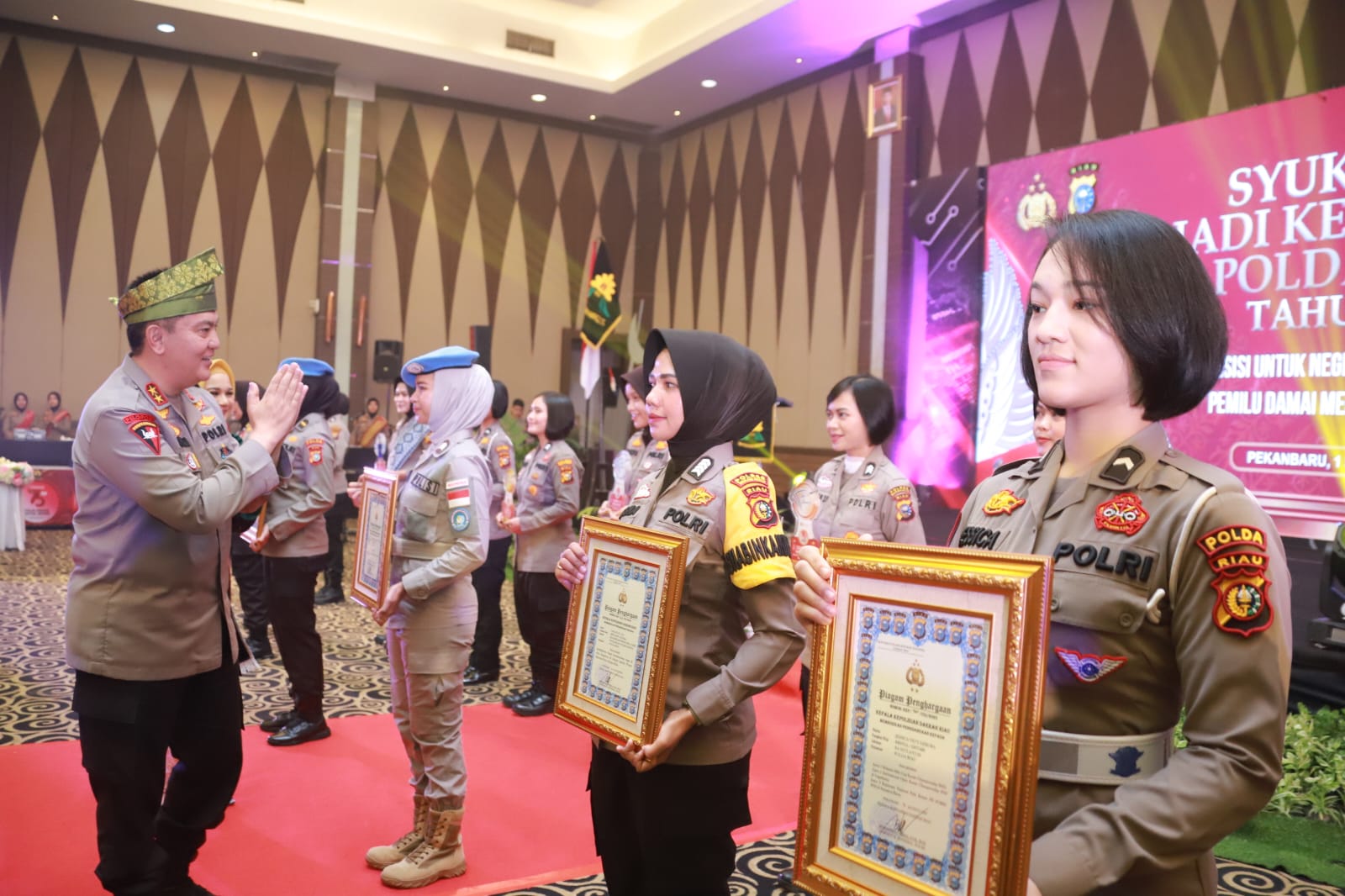 Pada peringatan ini, Kapolda Riau juga menyerahkan sejumlah penghargaan kepada Polwan yang berprestasi di jajaran Polda Riau.