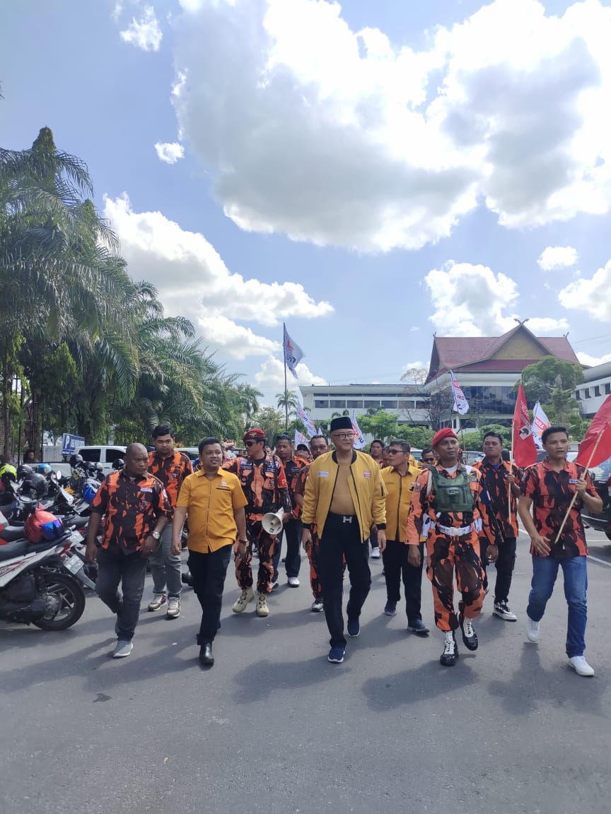 Pekanbaru suaramassa.co.id, – Ratusan anggota Pemuda Pancasila (PP) kota Pekanbaru memadati kantor Komisi Pemilihan Umum (KPU) Riau yang berada di jalan gajah Mada Minggu (14/5/2023). Kehadiran. Ratusan massa PP itu untuk mengantar tokoh muda Riau Suhermanto sebagai caleg DPRD Riau dari partai Hanura.