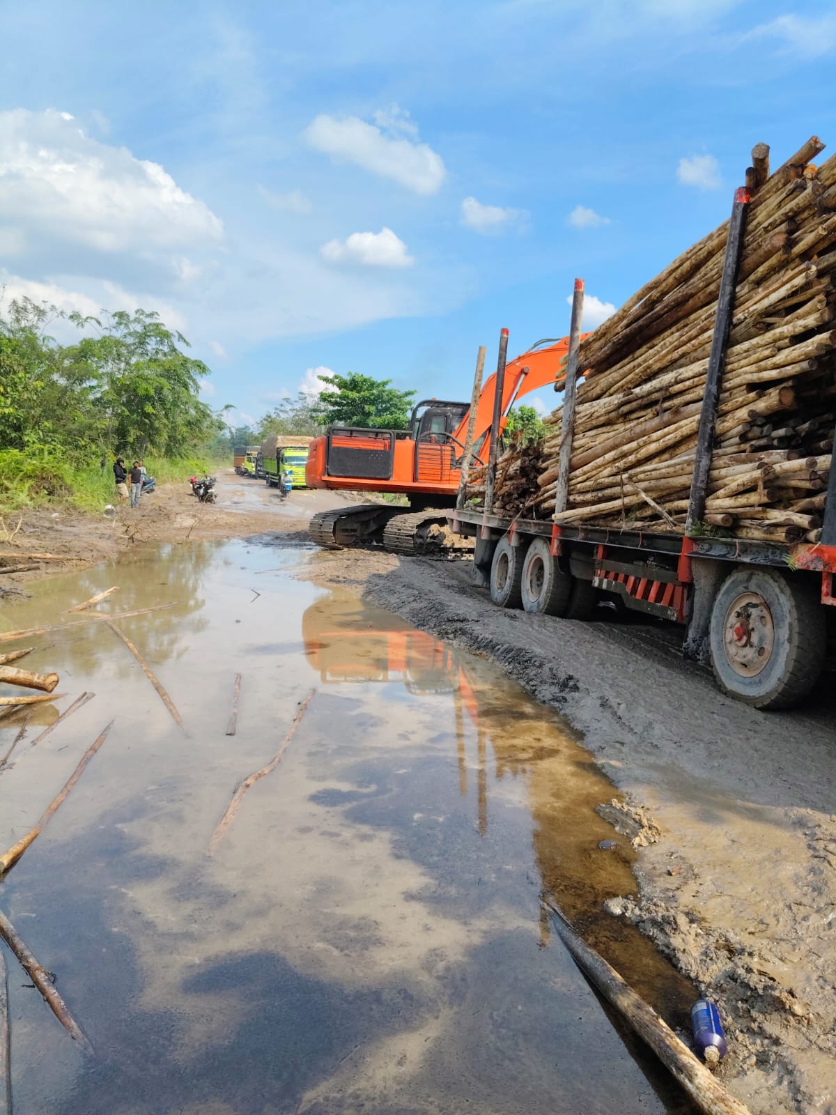 Warga menyebut kondisi jalan tersebut sebagai “seruan batin yang hampir punah ditelan jalan berlubang parah.” Lubang besar dan dalam tersebar di sepanjang jalan. Saat musim hujan, air menggenang dan menutupi lubang sehingga membahayakan kendaraan. Sedangkan di musim panas, debu beterbangan dan mengganggu pernapasan. Tidak sedikit kendaraan roda empat mengalami kerusakan atau terguling akibat kondisi ini. Ironisnya, lebih sering terlihat alat berat membantu kendaraan keluar dari jebakan lumpur daripada digunakan untuk memperbaiki jalan.