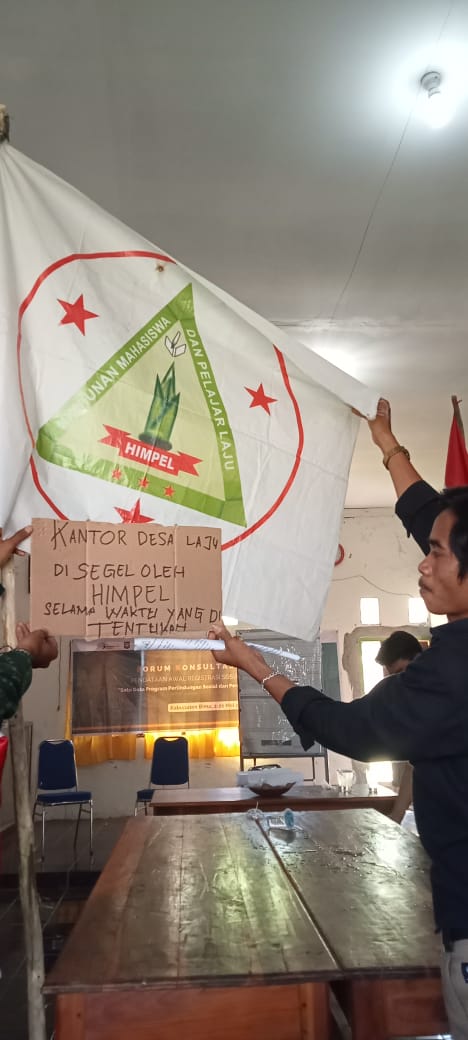 “Kita telah membawa tuntutan demi kemajuan Masyarakat Laju, Namun tidak di indahkan Oleh Kades, malahan Kades Kabur saat kami hadir di Kantor Desa, oleh karena itu, saya selaku Ketua Umum Himpunan Mahasiswa dan Pelajar Laju beserta jajaran dan sekaligus masyarakat desa laju menyegel kantor desa laju sebagai ungkapan kekecewaan kami terhadap Pemerintah Desa laju” ujar Adhar.