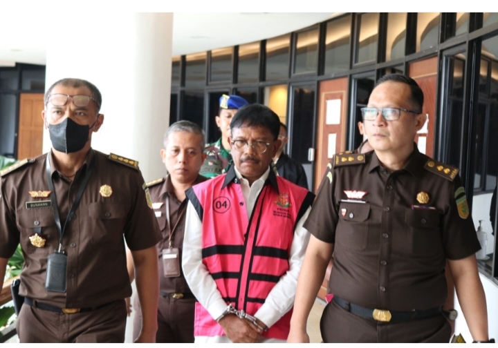 Jakarta (suaramassa.co.id ) – Tim Penyidik Direktorat Penyidikan Jaksa Agung Muda Bidang Tindak Pidana Khusus (JAM PIDSUS), menetapkan dan melakukan penahanan terhadap JGP Mentri Komunikasi dan Informatika (Menkominfo) RI sebagai tersangka dengan perkara dugaan tindak pidana korupsi dalam penyediaan infrastruktur Base Transceiver Station (BTS) 4G dan infrastruktur pendukung paket 1, 2, 3, 4, dan 5 BAKTI Kementerian Komunikasi dan Informatika Tahun 2020 s/d 2022, Rabu (17/05/2023).