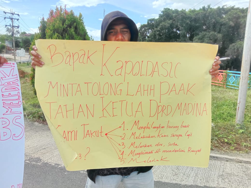 “Kita kembali turun ke jalan untuk aksi jilid ke IV menyuarakan aspirasi rakyat agar kasus PPPK ini diungkap tuntas secara adil dan transparan. Kita minta Ketua DPRD Madina EEL yang telah ditetapkan sebagai tersangka untuk segera ditahan oleh Poldasu apalagi setelah keluarnya surat telegram Kapolri No ST/ 1160/ 5/2023 sebagai bentuk pertanggung jawaban moral, etika, dan jabatan atas kasus hukum tsb. Ketua DPRD juga harus mundur dari jabatannya karna telah ditetapkan sebagai tersangka oleh Poldasu. Tragedi ini sangat ironis dan memalukan Kab Madina yang memiliki ketua DPRD dengan status tersangka kasus suap PPPK” ujar Pajarur Rohman Nasution selaku orator aksi.