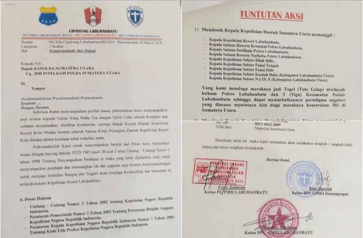 Diketahui juga salah satu poin yang akan menjadi tuntutan peserta aksi Cipayung Labuhanbatu adalah terkait dugaan maraknya judi 303 Toto Gelap (Togel), Narkoba yang berada di wilayah Hukum Polres Labuhanbatu yang sudah sangat merajalela dan membuat resah masyarakat.
