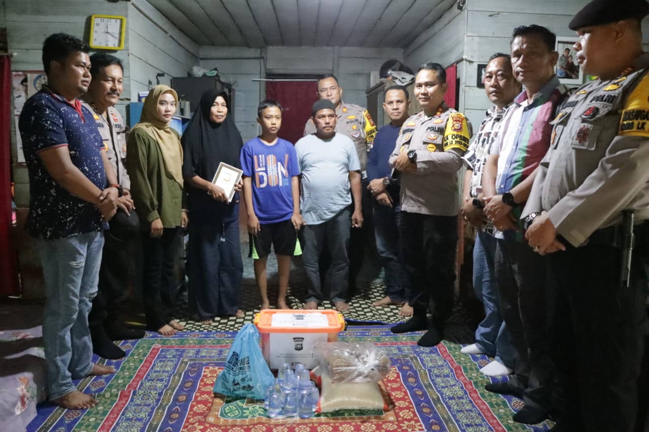 Kuansing- Kapolres Kuantan Singingi (Kuansing) AKBP Pangucap Priyo Soegito bersama rombongan mengunjungi rumah almarhum Werman (47), di Dusun 1, RT 001, RW 001, Desa Teratak Jering, Kecamatan Kuantan Hilir Seberang, Kabupaten Kuansing, pada Minggu (25/2/202024).