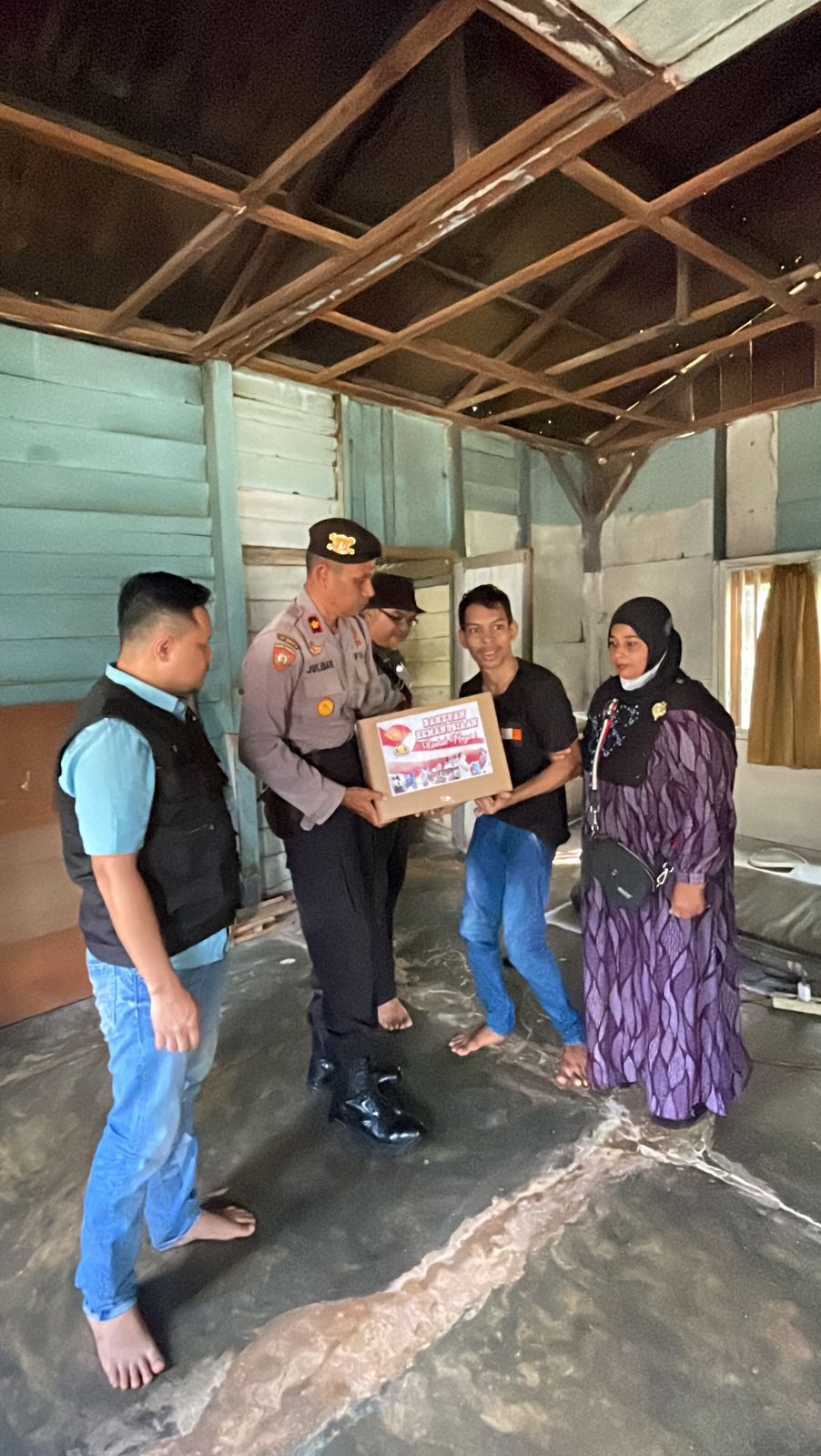 Kapolres Pelalawan diwakiki Kasat Sabhara Kompol Julibar didampingi Ketua JMSI Pelalawan, Erik Suhenra S. I. Kom dan Koordinator Sahabat Jumat, Ella dan tim awak media menyerahkan bantuan sembako kepada penyandang difable dan kaum dhuafa.