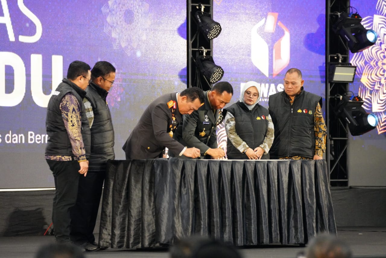 Jakarta, (Puspen TNI) – Panglima TNI Jenderal TNI Agus Subiyanto, S.E., M.Si. menghadiri deklarasi kampanye damai atau Rakornas Penegakan Hukum Terpadu (Gakkumdu) 2024 dengan tema “Gakkumdu Mengawal Pemilu 2024 Yang Demokratis dan Bermartabat” yang diselenggarakan oleh Bawaslu dan KPU, bertempat di Hotel Sahid, Jakarta Pusat, Senin (27/11/2023).