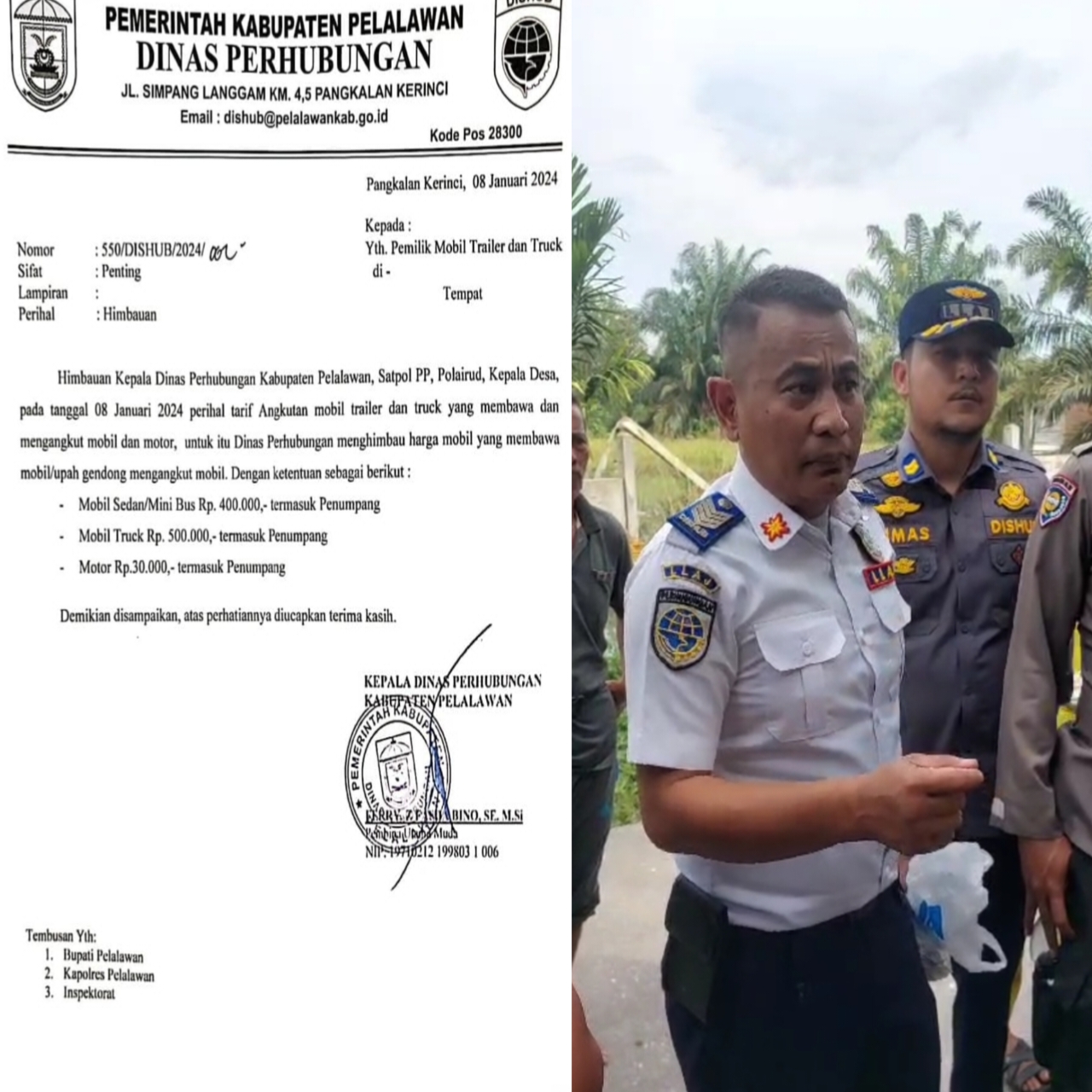 Pelalawan – Surat himbauan Dinas Perhubungan (Dishub) Kabupaten Pelalawan, yang diterbitkan pada 8 Januari 2023 dengan nomor 550/DISHUB/2024/002, memicu kontroversi di kalangan pengemudi yang harus melintasi jalan lintas timur Pelalawan yang terdampak banjir.