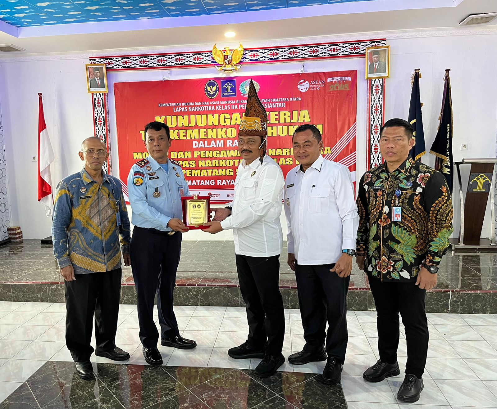 Pematang Siantar (SM ) – Brigjen Pol DR. Bambang Pristiwanto, S.H., M.H. (Asdep Bidang Penanganan Kejahatan Transnasional dan Kejahatan Luar Biasa Deputi V Kamtibmas Kementerian Koordinator Politik Hukum dan Keamanan), didampingi AKBP DR. Benny M. Saragih, S.IK, M.Si (Kabid Penanganan Kejahatan Transnasional dan Kejahatan Luar Biasa Deputi V Kamtibmas Kementerian Koordinator Politik Hukum dan Keamanan), mengunjungi Lembaga Pemasyarakatan Narkotika Kelas IIA Pematangsiantar dalam rangka monitoring dan evaluasi (monev). Kunjungan monev mereka terkait dengan laporan Rencana Aksi Nasional Pencegahan, Pemberantasan, Penyalahgunaan dan Peredaran Gelap Narkotika (RAN P4GN), sebagaimana diamanatkan oleh Inpres No.2 Tahun 2020 tentang RAN P4GN.