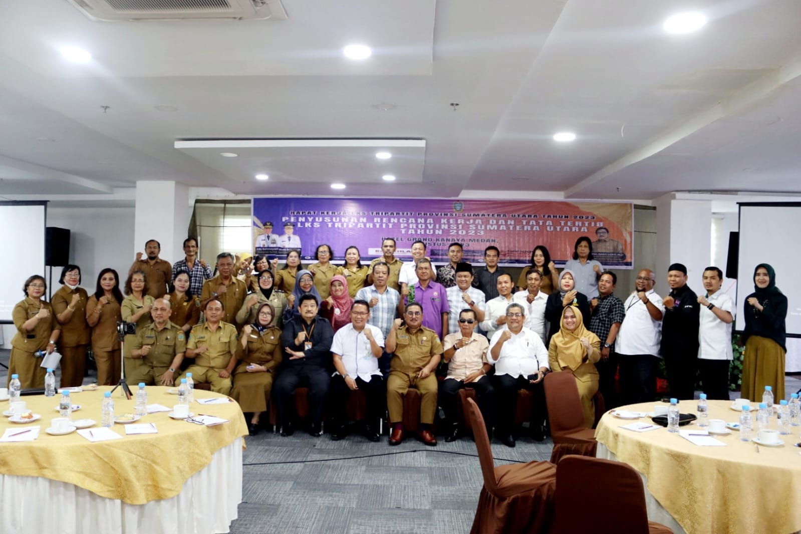 ” Alhamdulilah, kita dapat duduk bersama untuk membuat rencana kerja LKS Tripartit dan jadwal yang akan dikerjakan, termasuk Ranperda Ketenagakerjaan. Mohon dukungan, semoga lancar kedepan, Insya Allah ” ujar Kepala Dinas Ketenagakerjaan Provinsi Sumatera Utara Ir. Abdul Haris Lubis, M. Si saat membuka rapat di Grand Kanaya Hotel Medan, senin (28/08/2023).