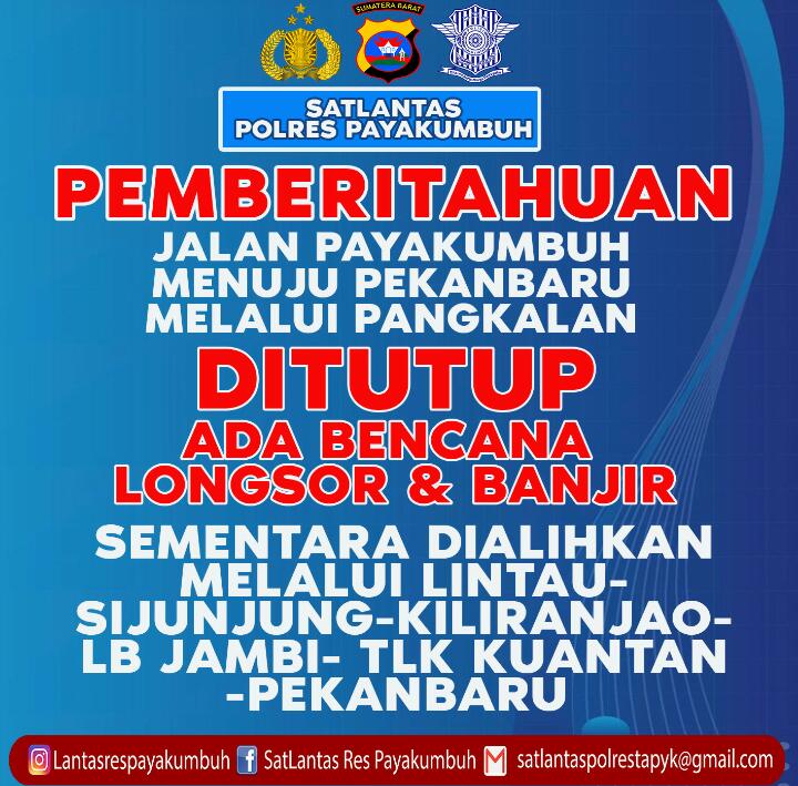 Sumbar, Selasa 26 Desember 2023 – Jalur utama yang menghubungkan Sumatera Barat dan Riau terputus total akibat longsor dan banjir di Kabupaten 50 Kota, terpaksa pihak kepolisian mengalihkan lalu lintas melalui rute alternatif Lintau-Kiliran Jao. Bripda Kevin Septian dari Sat Lantas Polres 50 memberikan informasi terkait titik rawan longsor di Hulu Air Kabupaten 50 Kota, menekankan keselamatan masyarakat sebagai prioritas utama.