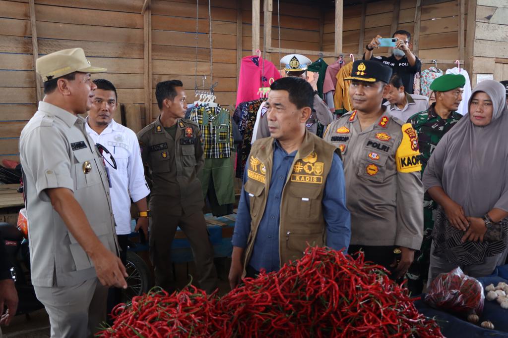 TELUK KUANTAN suaramassa.co.id,-Dalam rangka menjaga stabilitas harga jelang lebaran Idul Fitri 1444 H Kapolres Kuantan Singingi AKBP Pangucap Priyo Soegito SIK MH dan Plt Bupati Kuansing Drs. H. Suhardiman Amby, Ak, MM di dampingi Danramil 02/KT mewakili Dandim 0302/Inhu Kapten Legimin , Juprizal,Se, M.Si (Wakil Ketua II DPRD Kab Kuansing), Sekda Kab. Kuansing H. Dedi Sambudi SKM,.M.Kes, Waka Polres Kuansing Kompol Lilik Surianto, S. ST, SH, Kabag Ops Polres Kuansing Kompol Hendri Suparto, Kapolsek Kuantan Tengah Kompol SYAFRI JHONI,S.E,Kasat Reskrim Polres Kuansing AKP LINTER SIHALOHO,S.H.,M.H