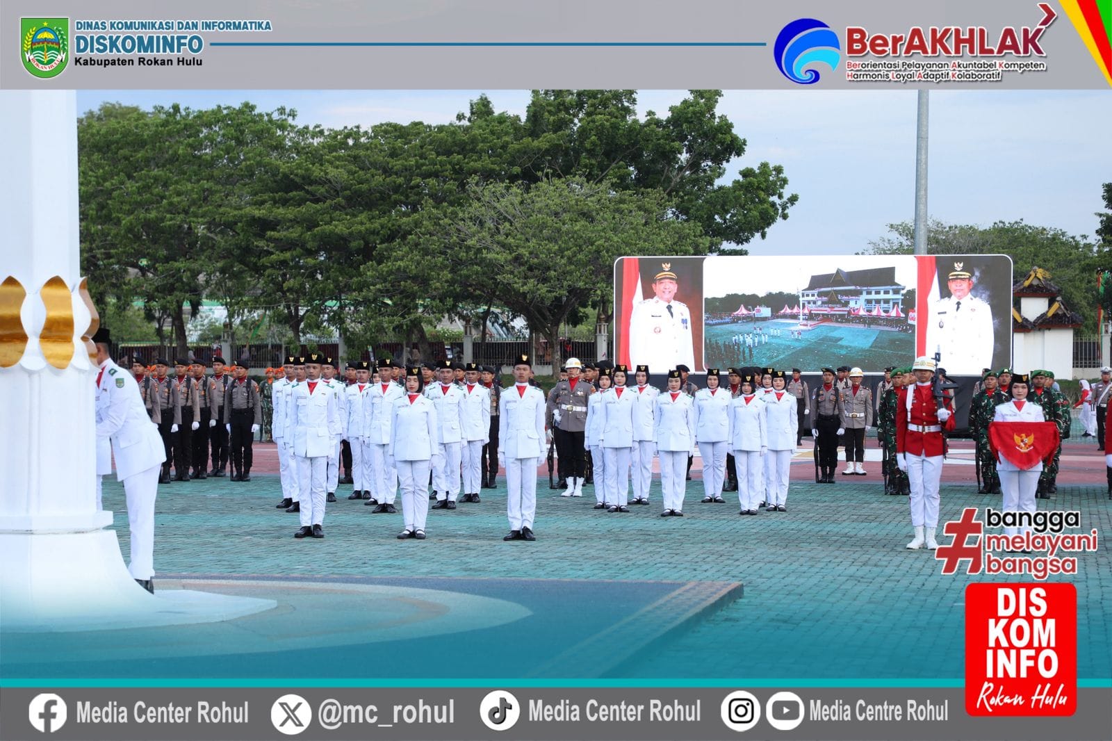 Pelaksanaan upacara diwarnai dengan prosesi pengibaran Sang Saka Merah Putih yang menjadi simbol penghormatan atas jasa para pahlawan dan ajakan kepada generasi muda untuk menjaga keutuhan Negara Kesatuan Republik Indonesia. Upacara berlangsung sakral dan penuh rasa haru ketika naskah proklamasi dibacakan oleh Ketua DPRD Rohul Hj. Sumiartini.