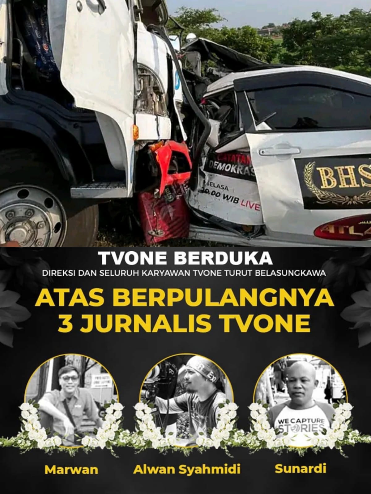 Pemalang (Nasional )- Mobil yang membawa kru TV One mengalami kecelakaan dengan truk di tol Pemalang-Batang 315.600 A, pada Kamis (31/10/2024). Tiga orang meninggal dunia akibat kejadian tersebut.