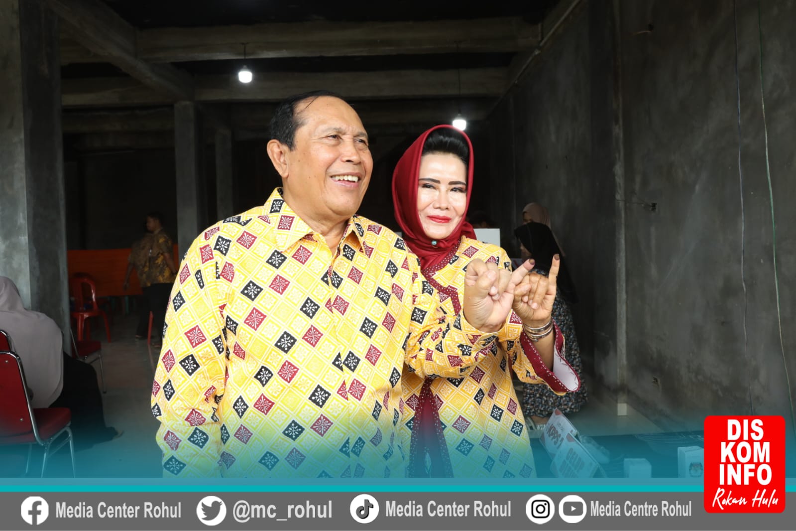 Rohul – Bupati Rokan Hulu(Rohul) H.Sukiman di dampingi Istri Hj.Peni Herawati Sukiman datangi TPS 20 di komplek Perumahan Pemda Rohul Desa Pematang Berangan untuk menggunakan Hak pilih (nyoblos) dalam Pemilu Serentak 2024 Rabu(14/02/2024)pagi.