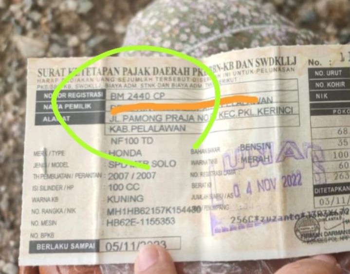 Berdasarkan informasi yang diperoleh, sepeda motor tersebut tidak menggunakan pelat nomor berwarna merah sebagaimana mestinya untuk kendaraan dinas, melainkan menggunakan pelat nomor polisi BM 2440 FI yang diduga palsu. Hal ini menimbulkan dugaan bahwa oknum PNS yang bersangkutan sengaja menggadaikan kendaraan dinas tersebut dengan maksud untuk menipu pihak pegadaian.
