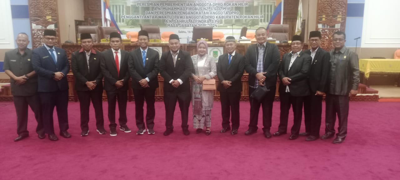 Rokan Hilir – Rapat Paripurna Istimewa pemberhentian Anggota DPRD rohil Muhammad Firdaus NZ.S.sos.M.iP sekaligus Peresmian Pengangkatan Pengganti Antar Waktu(PAW)Anggota DPRD rohil Sahrul Alfindra,S.pd,Periode 2019-2024