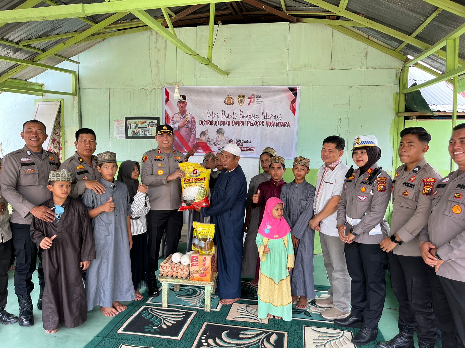 “Kegiatan Pendistribusian Buku dan Sembako ini dilaksanakan secara serentak sebagai upaya meningkatkan Budaya Literasi Rajin Membaca kepada masyarakat indonesia sejak dini, hal ini sebagai wujud kepedulian Polri dalam menjalin tali silahturahmi dengan masyarakat di kabupaten Pelalawan”.