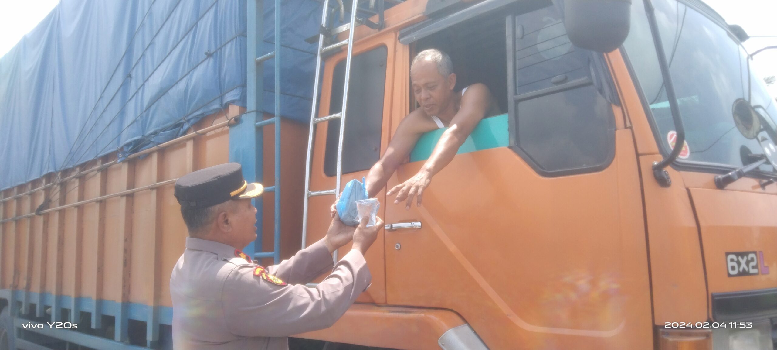 “Di sela-sela kejenuhan para sopir yang terjebak macet, personil Polsek Pangkalan Kuras bersama Awak media membagi-bagikan nasi bungkus dan air mineral kepada mereka.Semoga para supir dapat terbantu makan siang dengan pemberian kita ini ,” ucap Kapolsek.