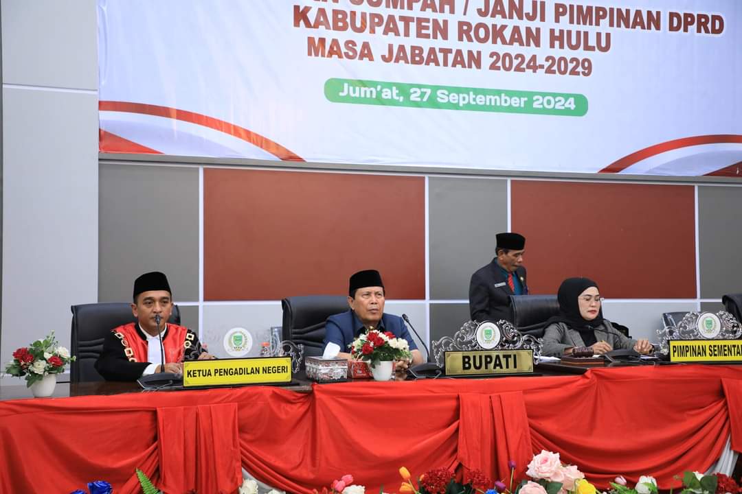 Rokan Hulu– Rapat Paripurna DPRD Kabupaten Rokan Hulu berlangsung khidmat di gedung DPRD. Acara ini ditandai dengan pelantikan pimpinan definitif untuk masa jabatan 2024-2029. Bupati Rokan Hulu, H. Sukiman, hadir langsung untuk menyaksikan momen bersejarah ini. Jum’at 27 September 2024.