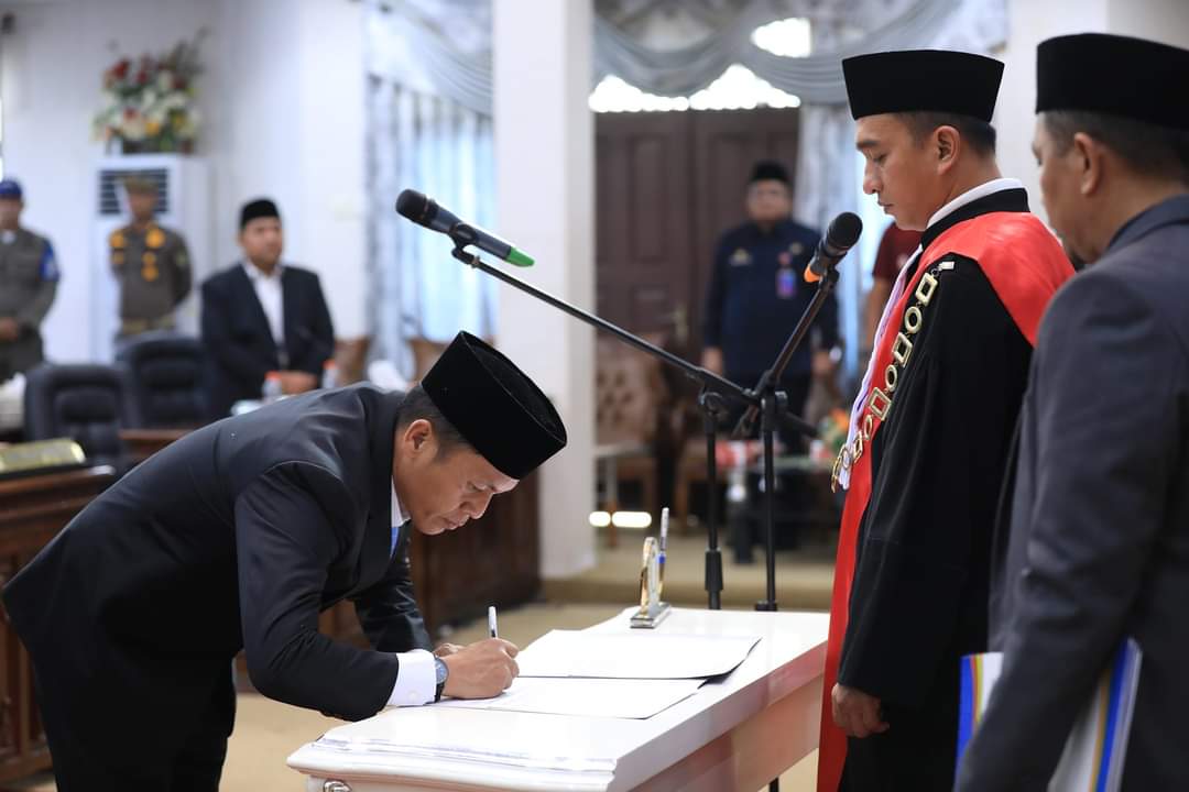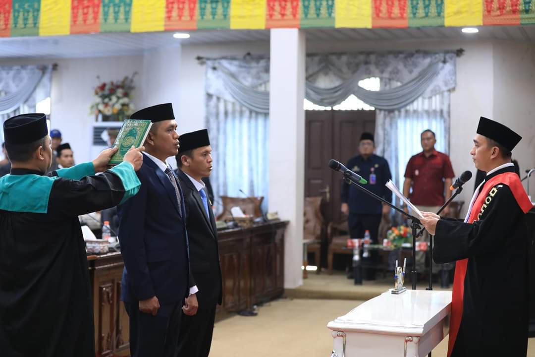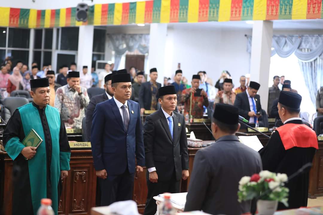 Dalam acara tersebut, Nono Patria Pratama dari Fraksi Golkar dan H. Porkot Lubis dari Fraksi Gerindra diambil sumpah dan janji sebagai pimpinan DPRD. Keduanya berkomitmen untuk menjalankan tugas dan amanah dengan baik, serta berkontribusi dalam pembangunan daerah.