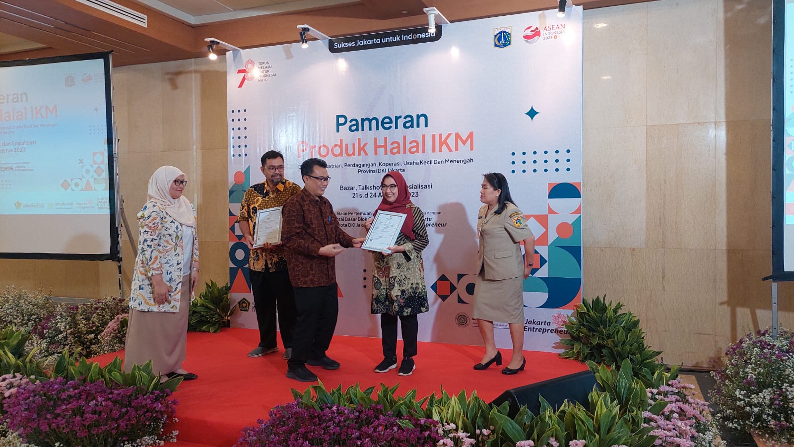 Jakarta || – Bertempat di Balaikota, pada hari Jumat 25 Agustus 2023  telah dilaksanakan penyerahan 1.075 sertifikat halal kepada UMKM yang berdomisili di DKI Jakarta. Penyerahan ini adalah rangkaian dari pelaksanaan Sertifiksi Halal   yang telah melalui tahapan audit yang dilaksanakan oleh LPPOM MUI DKI Jakarta.