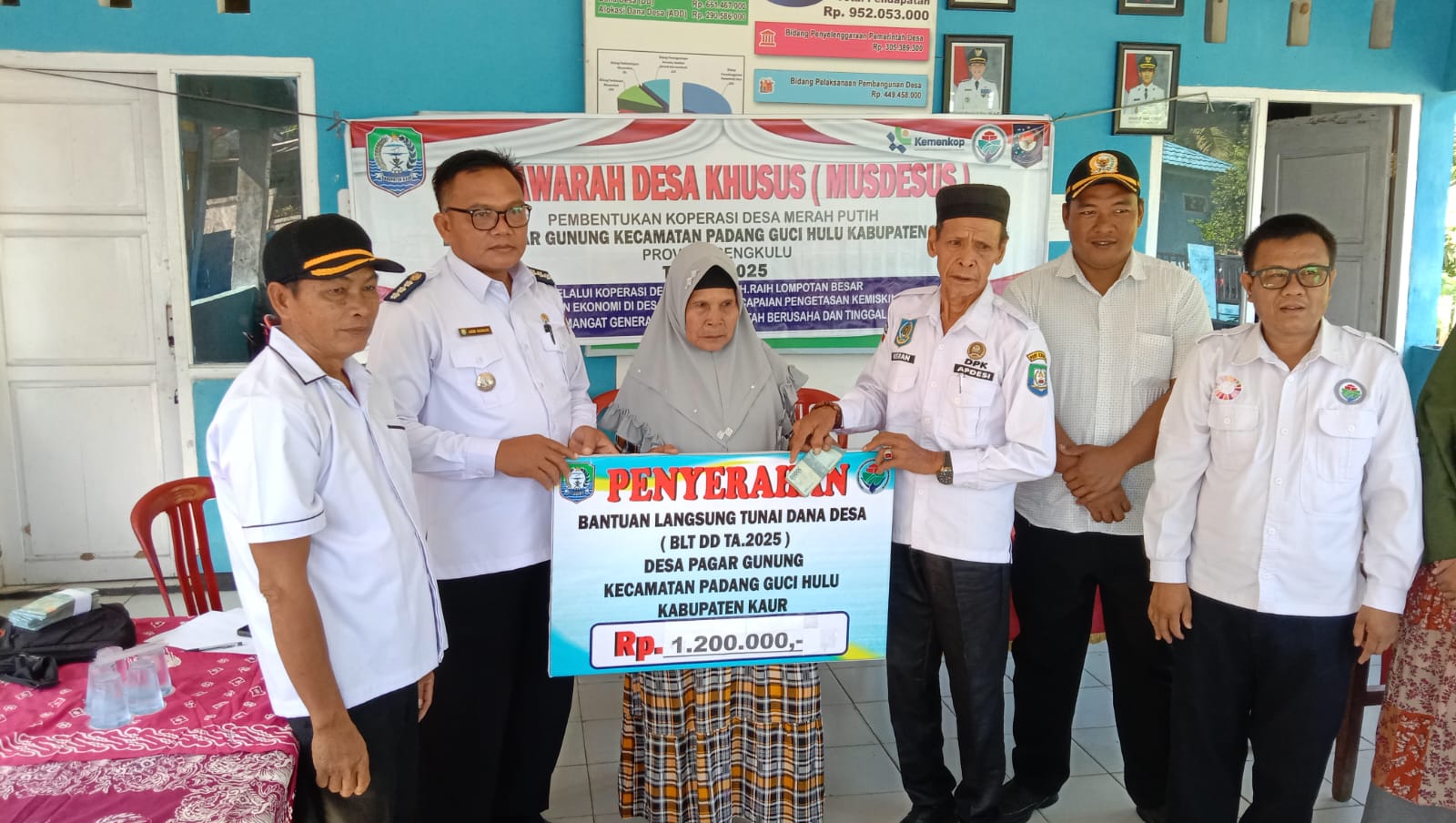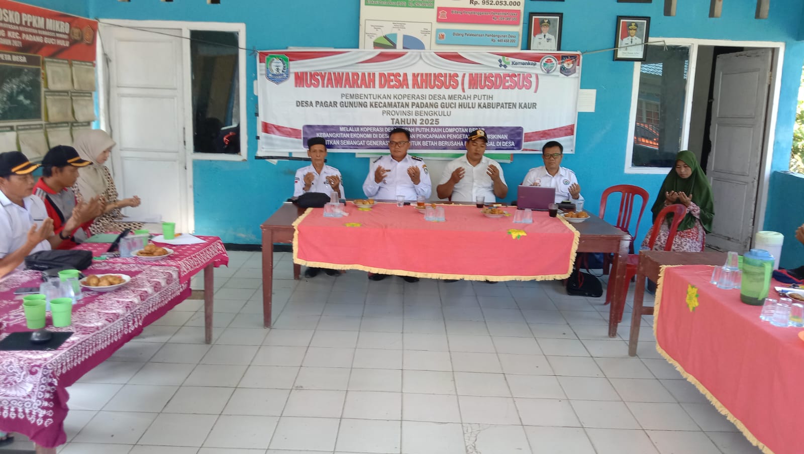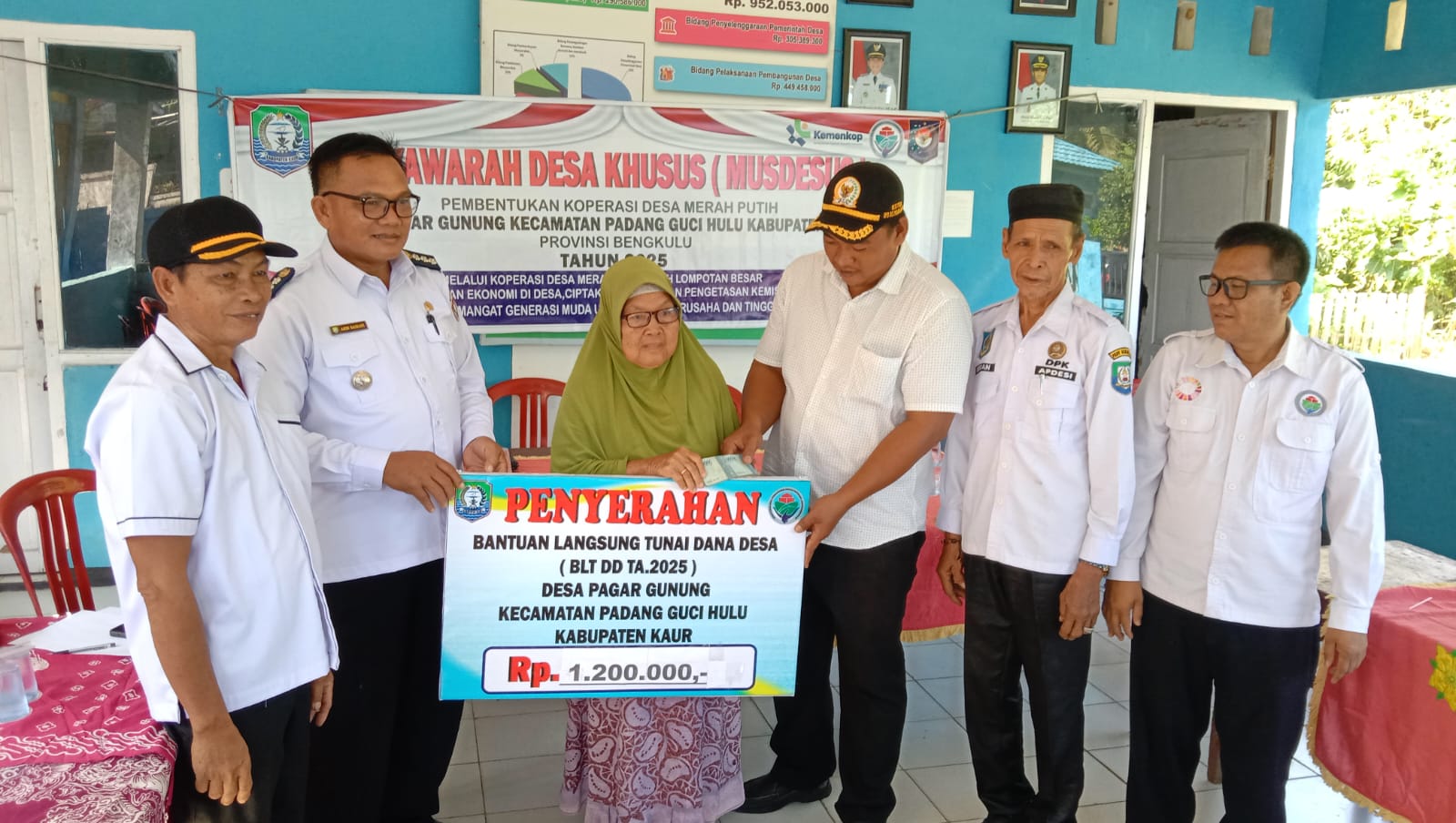KAUR, Suaramassa.co.id – Pemerintah Desa Pagar Gunung Kecamatan Padang Guci Hulu Kabupaten Kaur rampung membentuk Koperasi Merah Putih dan penyaluran Bantuan Langsung Tunai Dana Desa ke 11 Keluarga Penerima Manfaat (KPM) di kantor desa setempat, Rabu (7/5).