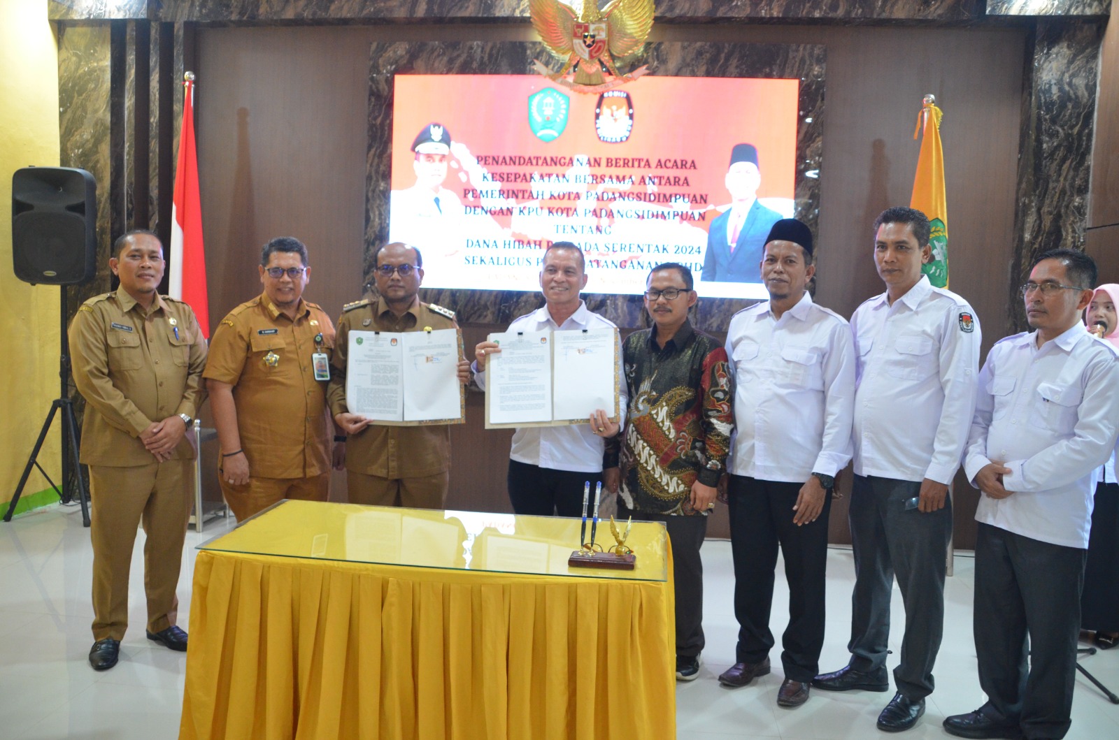 Penandatanganan berita acara kesepakatan bersama antara Pemerintah Kota Padangsidimpuan dengan Komisi Pemilihan Umum Kota Padangsidimpuan, di Aula Kantor Walikota Padangsidimpuan, Senin (6/11).