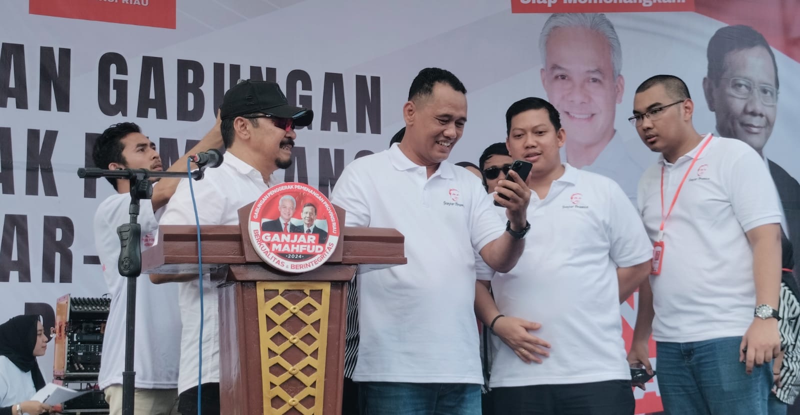 “Salam sejahtera buat bapak/ibu semua yang telah mengundang saya untuk menyaksikan deklarasi di Riau,” kata Ganjar.
